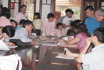 Hôm qua, hà ng trăm khách hà ng đã đến văn phòng giao dịch cá»§a Cty Cổ phần Xây dá»±ng và Dịch vụ 1-5 (gá»i tắt Cty 1-5), để là m đơn rút lại tiá»n mà hỠđã đóng và o dá»± án KÄT Thanh Hà .